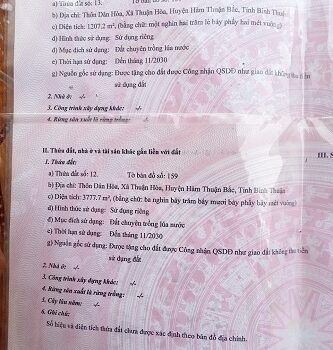 Chính chủ cần bán gấp lô đất tại: Dân Hòa, Thuận Hòa, Hàm Thuận Bắc, Bình Thuận